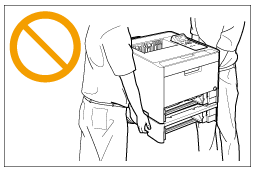 Non spostare la stampante con l'alimentatore carta installato. L'alimentatore carta potrebbe cadere e causare lesioni alle persone.