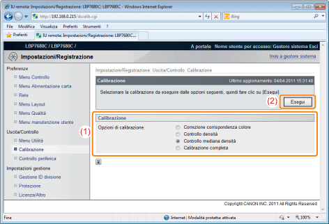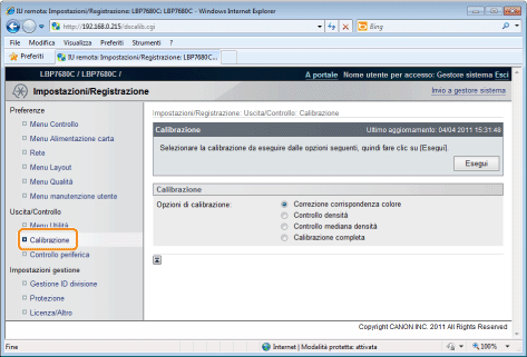 Precauzioni nell'eseguire la calibrazioneSei si esegue la calibrazione di frequente, questo potrebbe influire sulla durata delle cartucce del toner.
