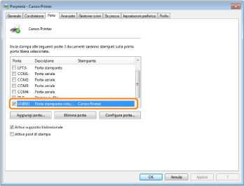 Selezionare la porta giusta.