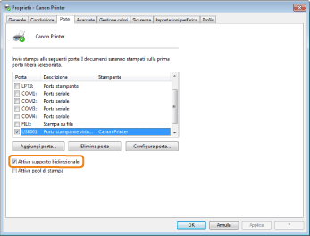 Attivare la comunicazione bidirezionale e riavviare il computer e la stampante.