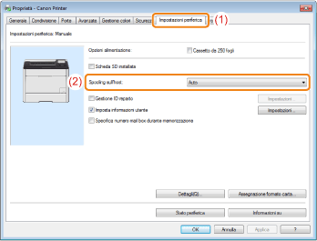 Se l'opzione [Spooling sull'host] (che prevede l'elaborazione dei dati di stampa all'interno del computer) è impostata su [Disabilitato], non sarà possibile modificare le impostazioni del driver perché alcune opzioni non saranno disponibili.