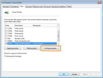 Non deselezionare la casella di controllo [Attiva supporto bidirezionale].Deselezionando la casella di controllo non sarà possibile stampare.