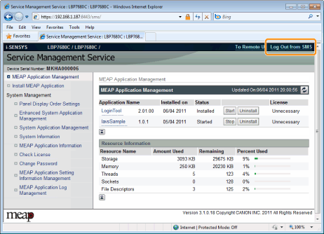 Fare clic su [Log Out from SMS] per chiudere SMS.