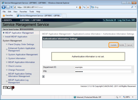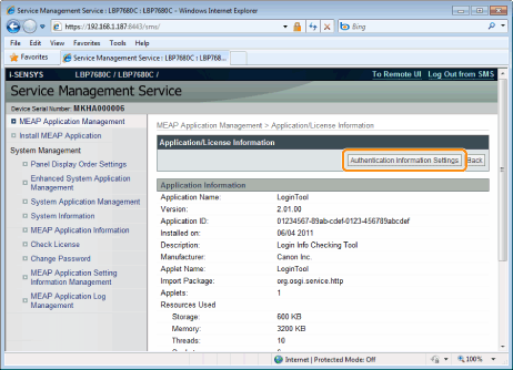 Impostazione delle informazioni di autenticazione per le applicazioni MEAP
