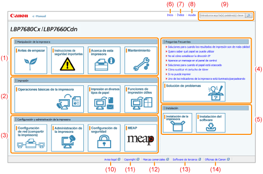 Se muestra la página principal del e-Manual.