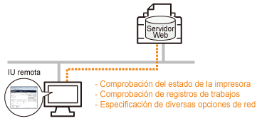 Mediante el acceso y la utilización de la impresora desde el navegador Web a través de la red, podrá administrar la impresora empleando un ordenador situado en una ubicación remota.