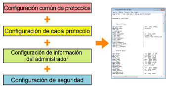 Mediante el acceso al servidor de FTP de la impresora, podrá especificar la configuración de red, la configuración de seguridad, etc. Los elementos de ajuste se presentan en una lista en un archivo, por lo que podrá especificar varios elementos a la vez.