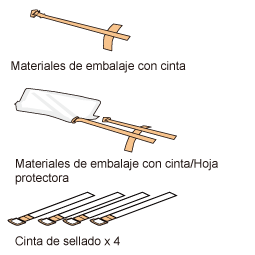 Comprobación de la retirada de los materiales de embalajeCompruebe que se han retirado completamente los siguientes materiales de embalaje.