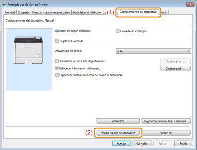 Seleccione la casilla de verificación de [Cassette de 250 hojas] en [Opciones de origen del papel].