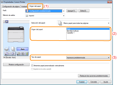 Establezca el origen del papel que desea utilizar.