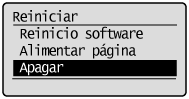 Si se está ejecutando el apagado, después de eliminar el trabajo usando un reinicio por software, ejecute de nuevo la operación de apagado. Si no se ejecuta el apagado, pulse [ ] ( : En línea). |