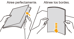 Airee perfectamente las transparencias y, a continuación, alinee los bordes antes de cargarlas ya que podrían pegarse entre sí. Si no se airean lo suficiente, podrían alimentarse varias hojas a la vez y provocar atascos de papel.