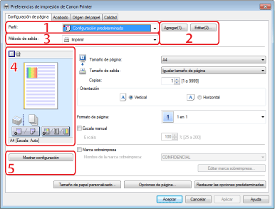 Puede seleccionar un perfil para repetir cómodamente la misma configuración de impresión (consulte "Visualización de la ayuda en línea").