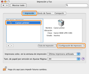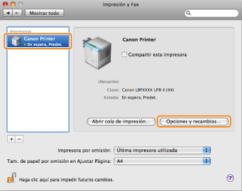 Dependiendo del tipo y la versión del controlador de impresora, [Información de la impresora] podría mostrarse en el cuadro de diálogo [Imprimir]. Si fuera así, haga clic en [Información de la impresora] para obtener o verificar la información de la impresora.