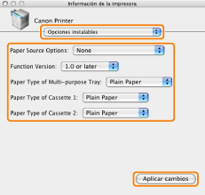 Si cierra el cuadro de diálogo [Información de la impresora] sin hacer clic en [Aplicar cambios], la configuración que haya realizado no se guardará.