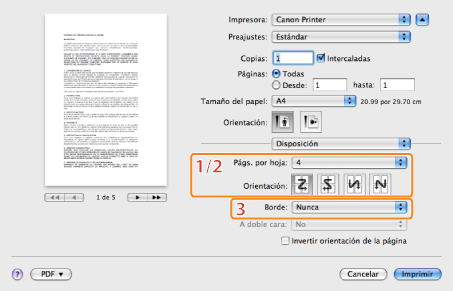 Imprime varias páginas en una hoja de papel (consulte "Visualización de la ayuda en línea").