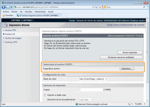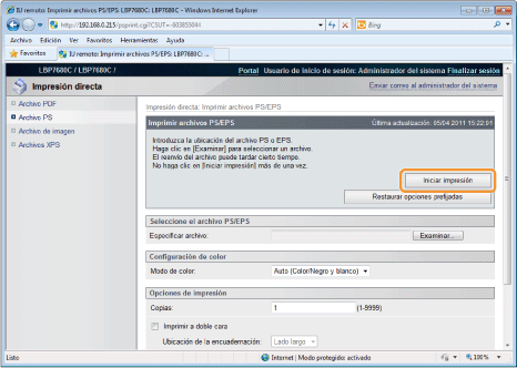 No siga cliqueando en [Iniciar impresión] mientras se transfiere el archivo. A veces se necesita algún tiempo para transferir un archivo, pero si sigue cliqueando durante el transferencia, un fallo de archivo puede ocurrir y puede ser imposible mandarlo.