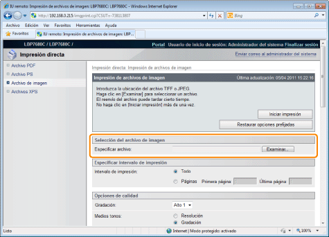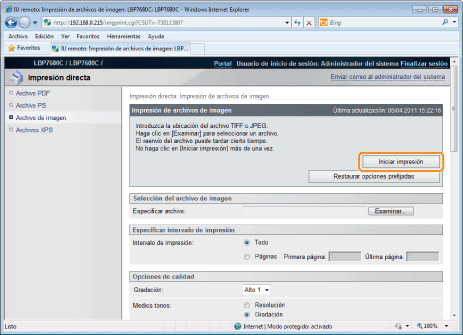 No siga cliqueando en [Iniciar impresión] mientras se transfiere el archivo. A veces se necesita algún tiempo para transferir un archivo, pero si sigue cliqueando durante el transferencia, un fallo de archivo puede ocurrir y puede ser imposible mandarlo.
