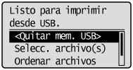 Quite el dispositivo de memoria USB después de acabar la impresión.