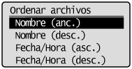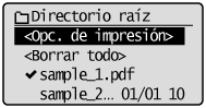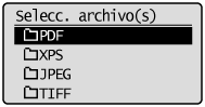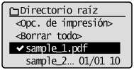 ] se adjuntará al nombre de archivo. Si se selecciona un archivo con [ ] adjuntado y se pulsa de nuevo [OK], la selección se eliminará.Si se selecciona una carpeta, y se pulsa [OK], aparece la lista de archivos dentro de la capeta.