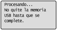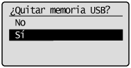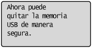 Cuando aparece el siguiente mensaje, quite el dispositivo de memoria USB de la impresora.