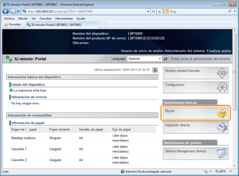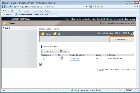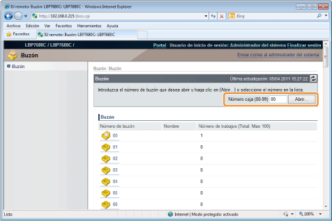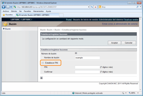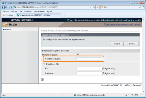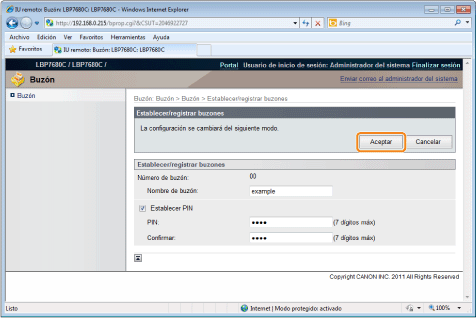 Si se especifica una contraseña para el buzón, escriba la contraseña, y luego haga clic en [Aceptar].