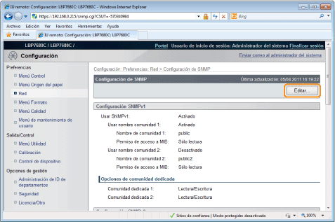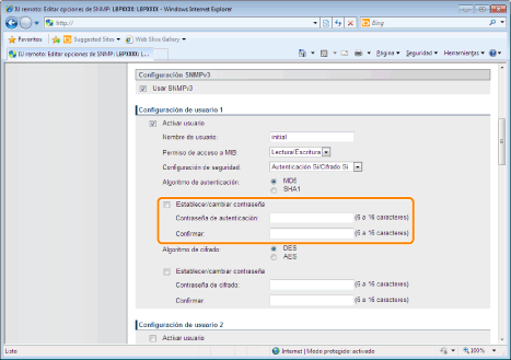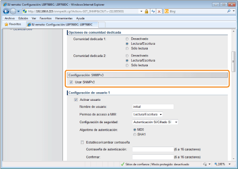 Si borra la casilla de verificación [Usar SNMPv1], establézcala después de consultar el administrador de red.