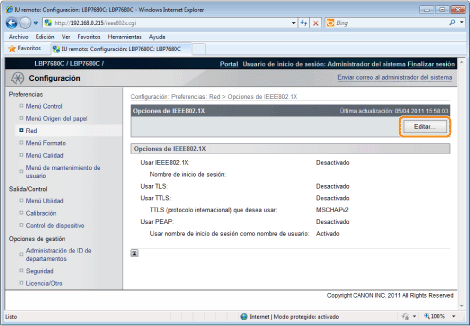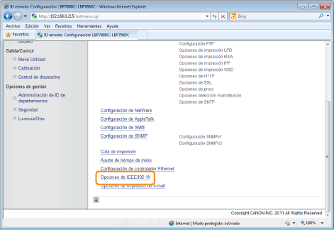 Haga clic en [Opciones de IEEE802.1X].