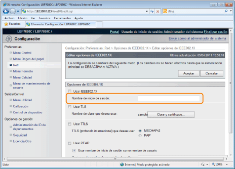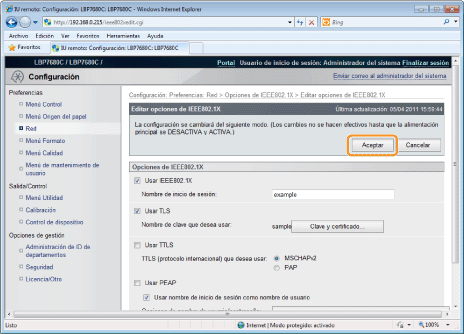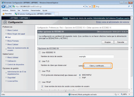 Establezca la información de autenticación para utilizar TLS con el método de autenticación IEEE802.1X.