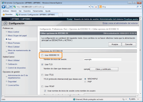 Seleccione la casilla de verificación [Usar IEEE802.1X].