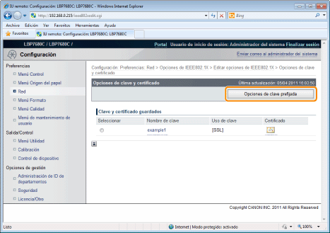 Seleccione la clave a utilizar, y luego haga clic en [Opciones de clave prefijada].