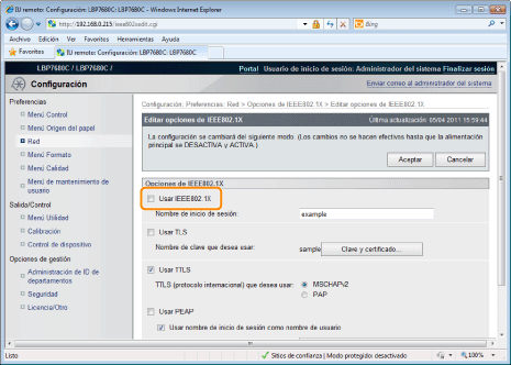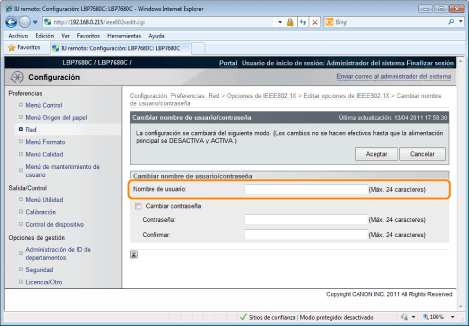 Para establecer un nombre de usuario y una contraseñaNecesita configurar antes la función de comunicación de codificación SSL.