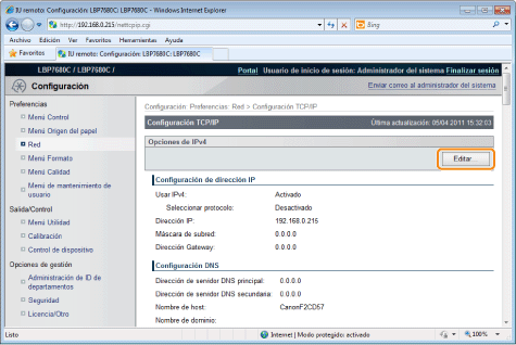 Haga clic en [Editar...] en [Opciones de IPv4].