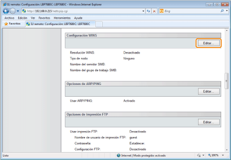 Haga clic en [Editar...] en [Configuración WINS].