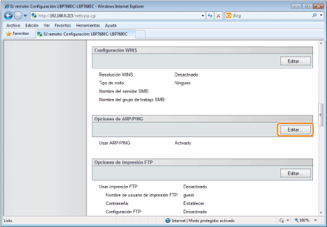 Haga clic en [Editar...] en [Opciones de ARP/PING].