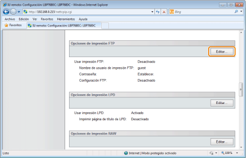 Haga clic en [Editar...] en [Opciones de impresión FTP].