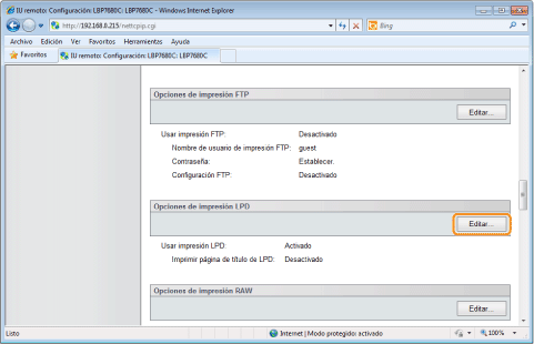 Haga clic en [Editar...] en [Opciones de impresión LPD].