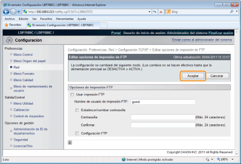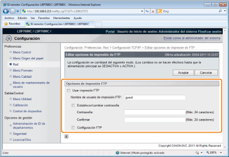 Establezca imprimir FTP.