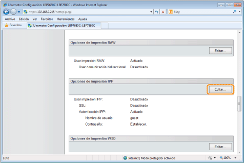 Haga clic en [Editar...] en [Opciones de impresión IPP].