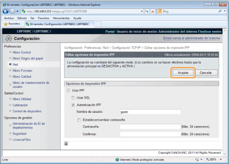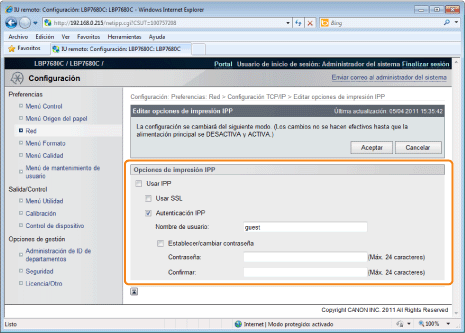 Establezca imprimir IPP.