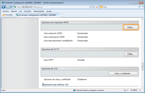 Haga clic en [Editar...] en [Opciones de impresión WSD].