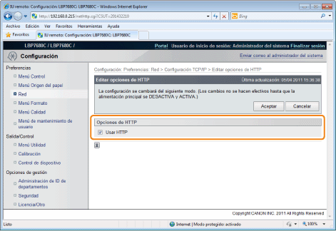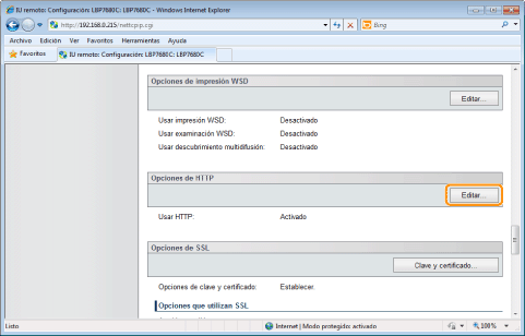 Haga clic en [Editar...] en [Opciones de HTTP].