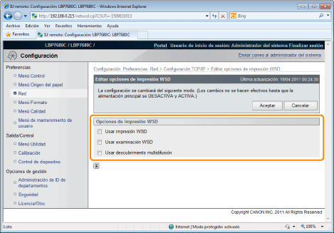 Establezca la impresión WSD.