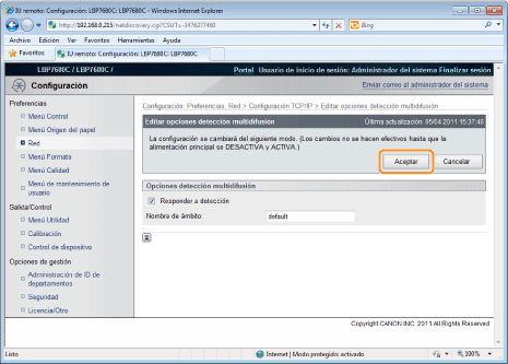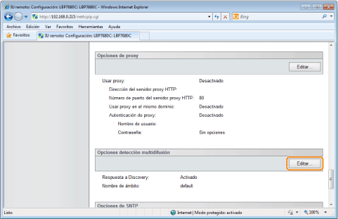 Haga clic en [Editar...] en [Opciones detección multidifusión].