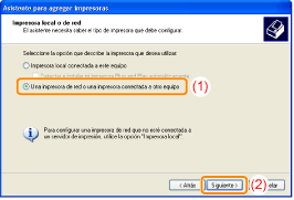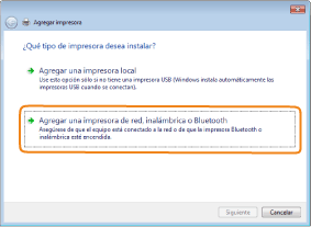Seleccione [Una impresora de red o una impresora conectada a otro equipo].