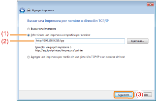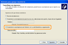 Seleccione [Seleccionar una impresora compartida por nombre].