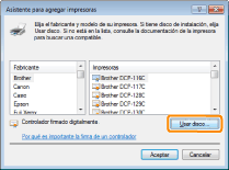Si la impresión está restringidaNo puede instalar el controlador de impresora.