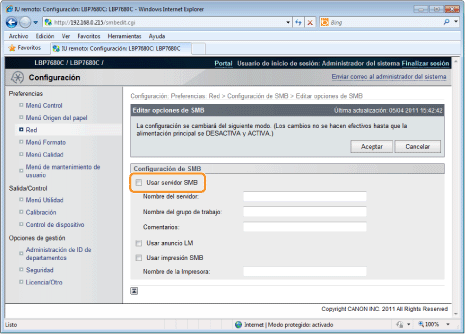 Seleccione la casilla de verificación [Usar impresión SMB].