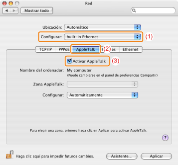 Asegúrese de que está marcada la casilla de verificación [Activar AppleTalk].