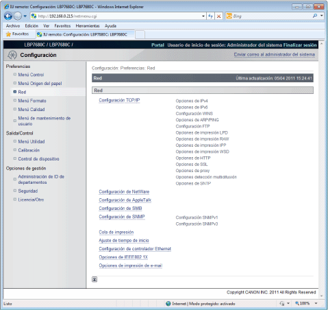 [Configuración TCP/IP]Muestra la configuración de TCP/IP.